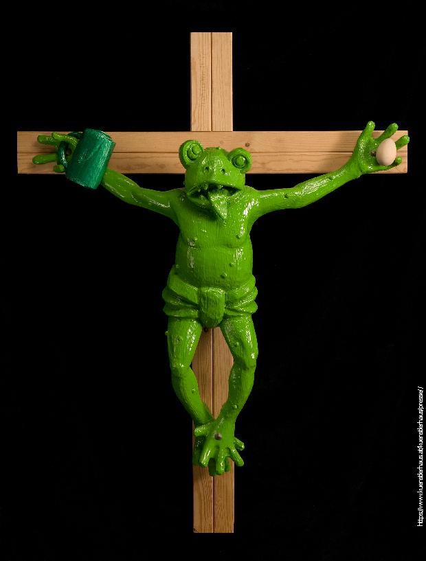 Na primer, rodno preokrenuti Ostentatio genitalium Marine Abramović; krstovi od čokolade i šećera, vuk-kardinal Austrijanke Debore Sengl, žaba na krstu Nemca Martina Kipenbergera.
