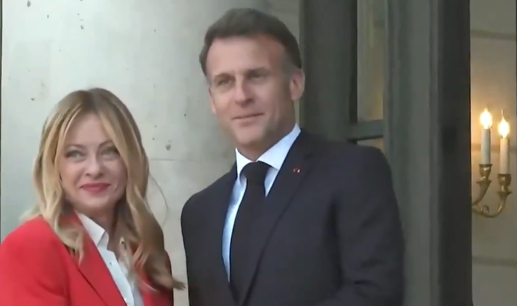 Meloni je djelovala zbunjeno, kao da je očekivala uobičajeno rukovanje, a ne poljubac i zagrljaj francuskog predsjednika. Makron je zgrabio za ramena i poljubio dvaput, prilično srdačno. Ona se potom nasmijala i kao da je pokušala da pobjegne iz Makronovog stiska.